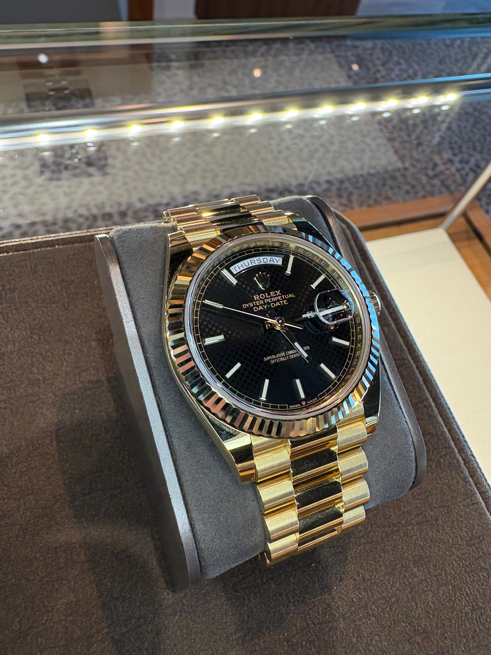 Rolex Day-Date 40 Black Dial 18K Yellow Gold President Men's Watch 228238 - 2022