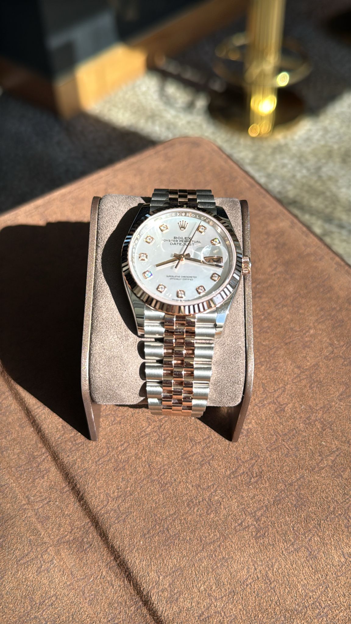 Rolex Steel and Everose Rolesor Datejust 36 Watch - Fluted Bezel - White Mother-Of-Pearl Diamond Dial - Jubilee Bracelet - 126231 - 2025