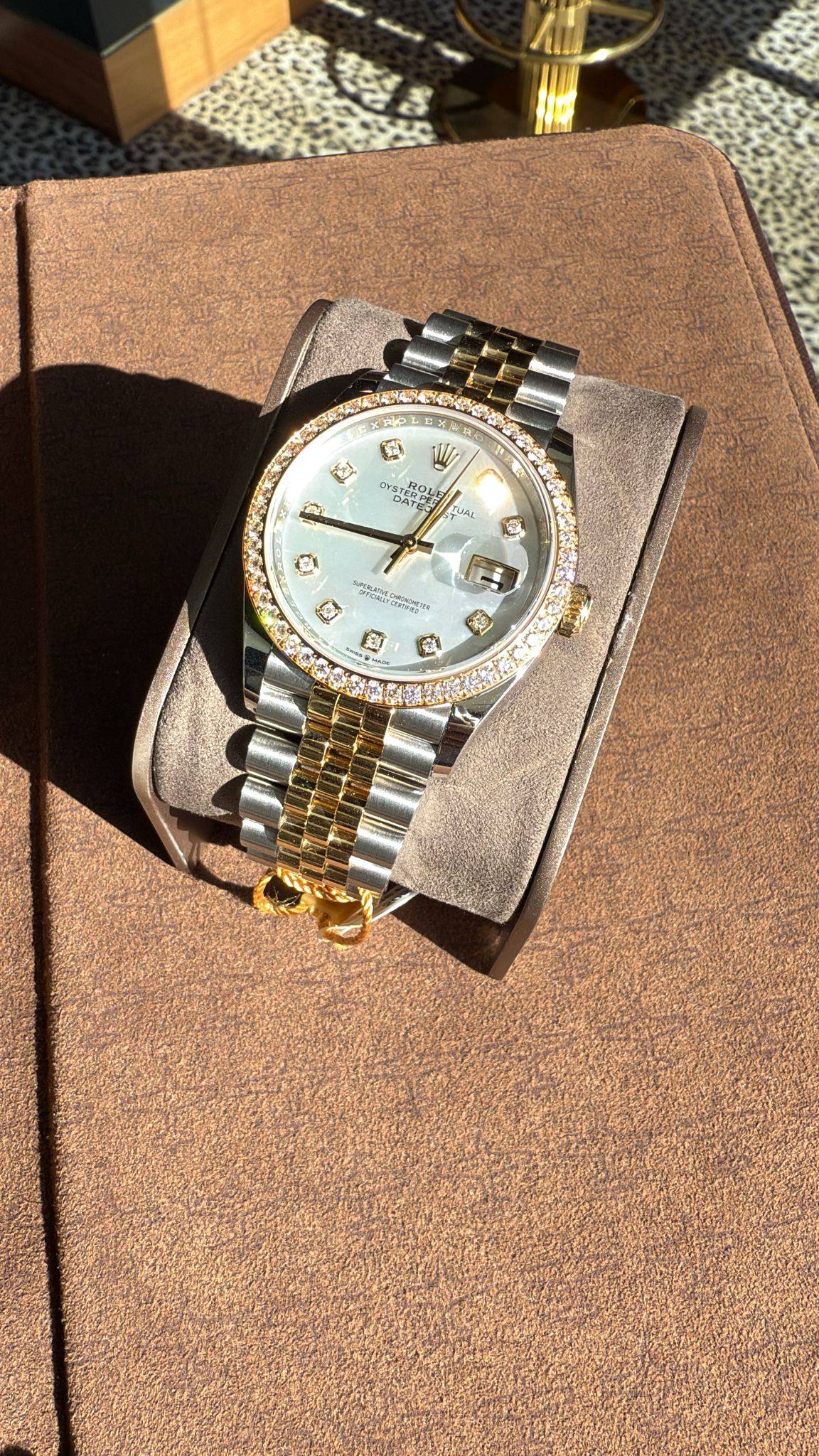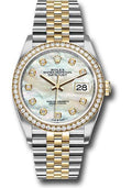 Rolex Steel and Yellow Gold Rolesor Datejust 36 Watch - Yellow Diamond Bezel - White Mother-Of-Pearl Diamond Dial - Jubilee Bracelet - 126283RBR - 2025